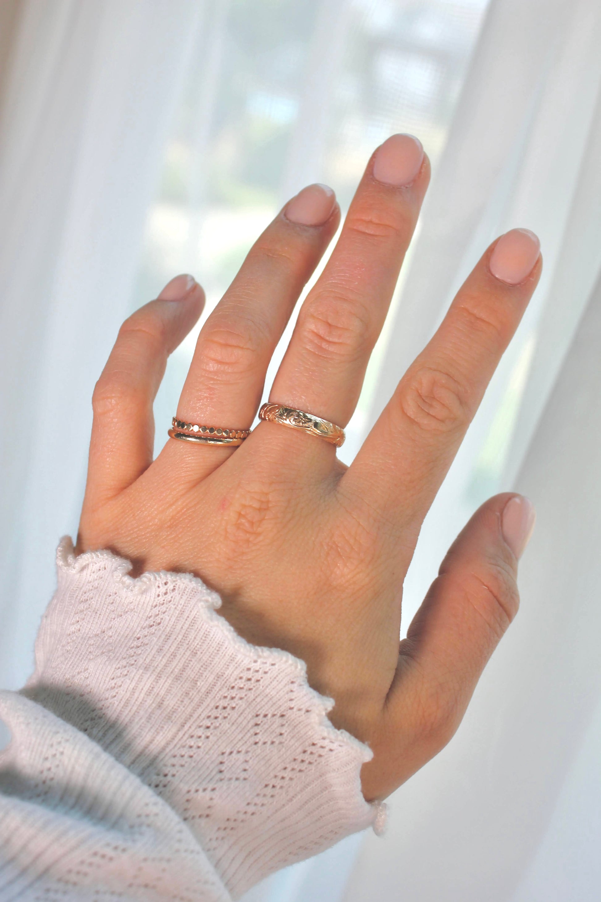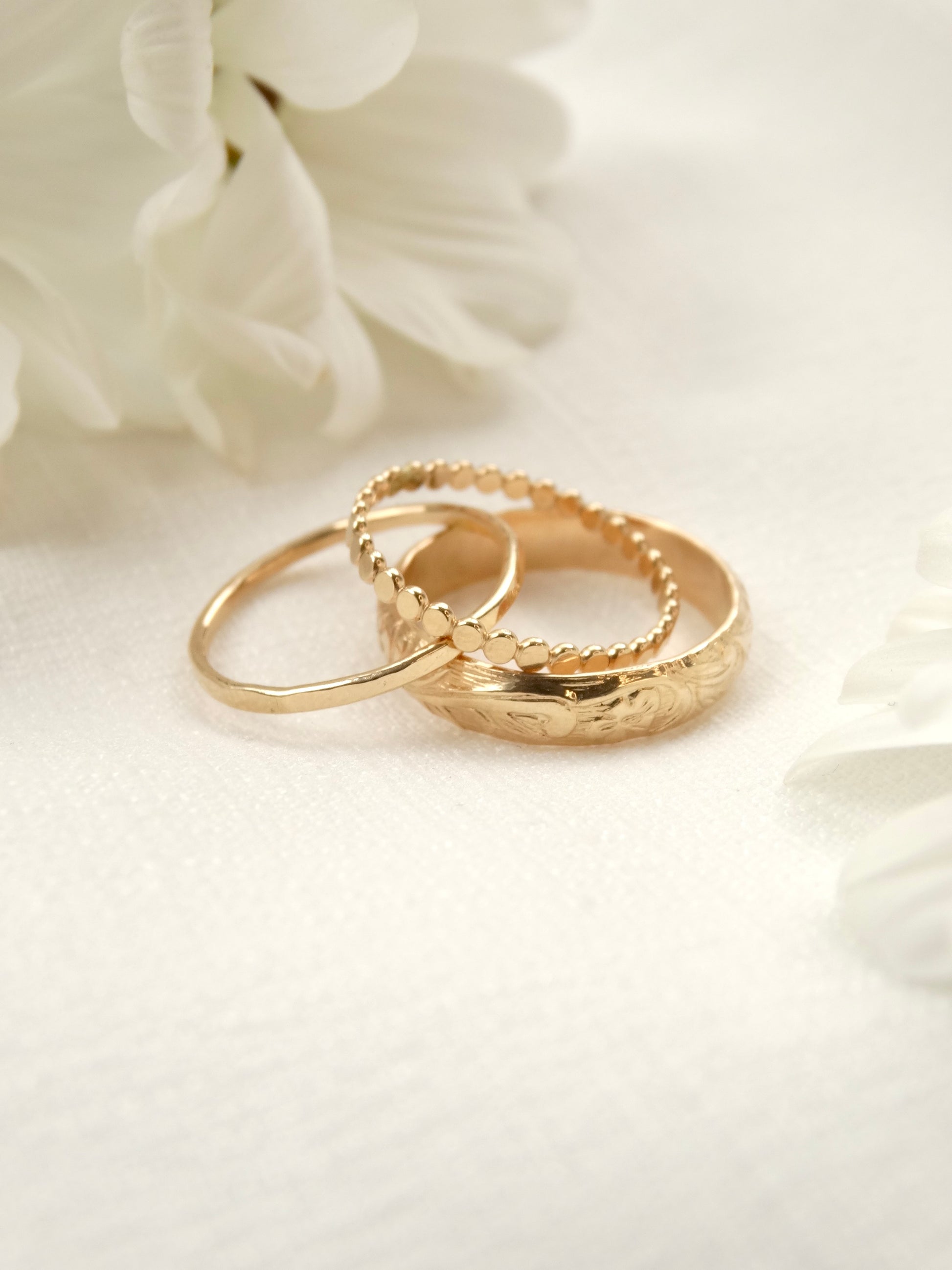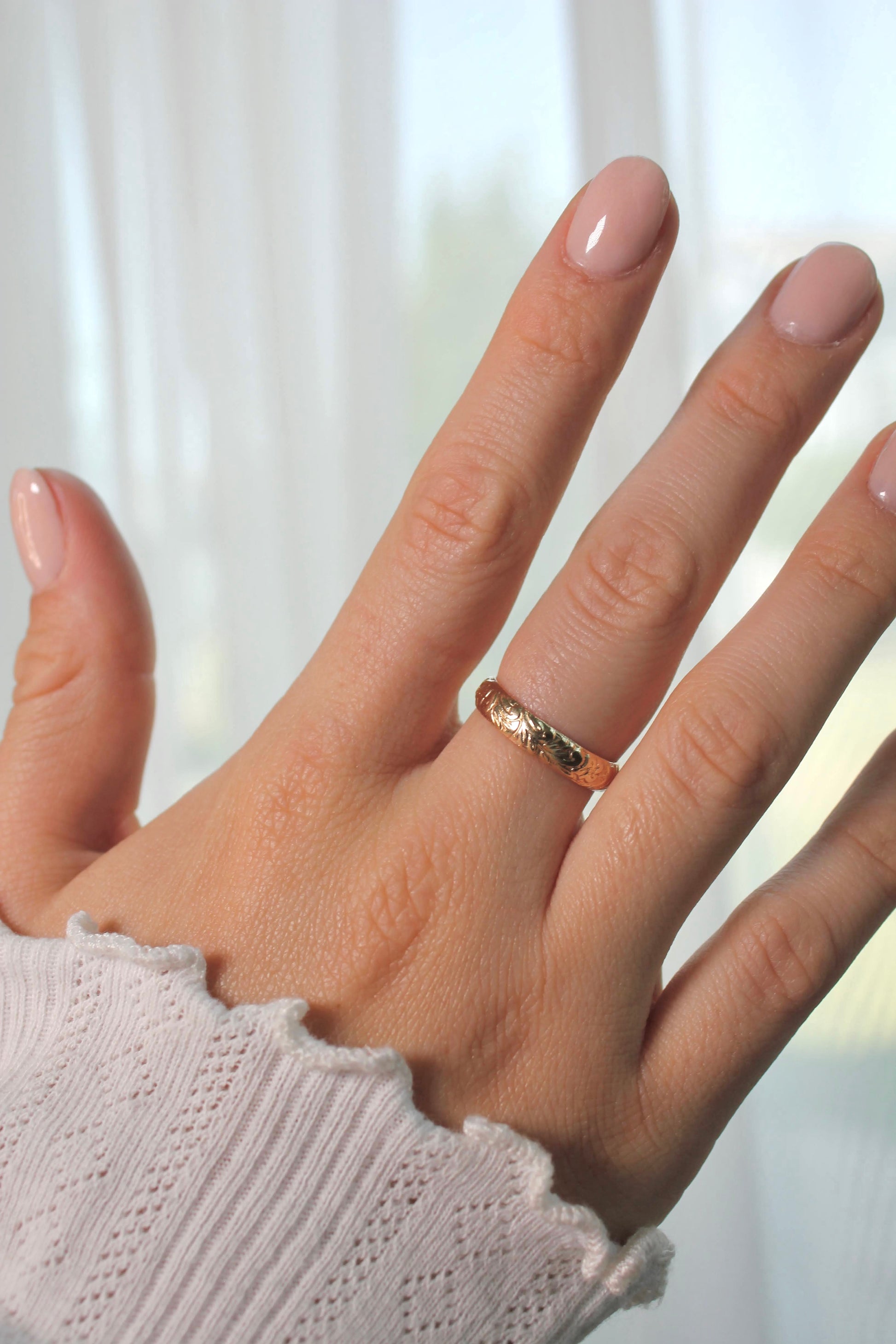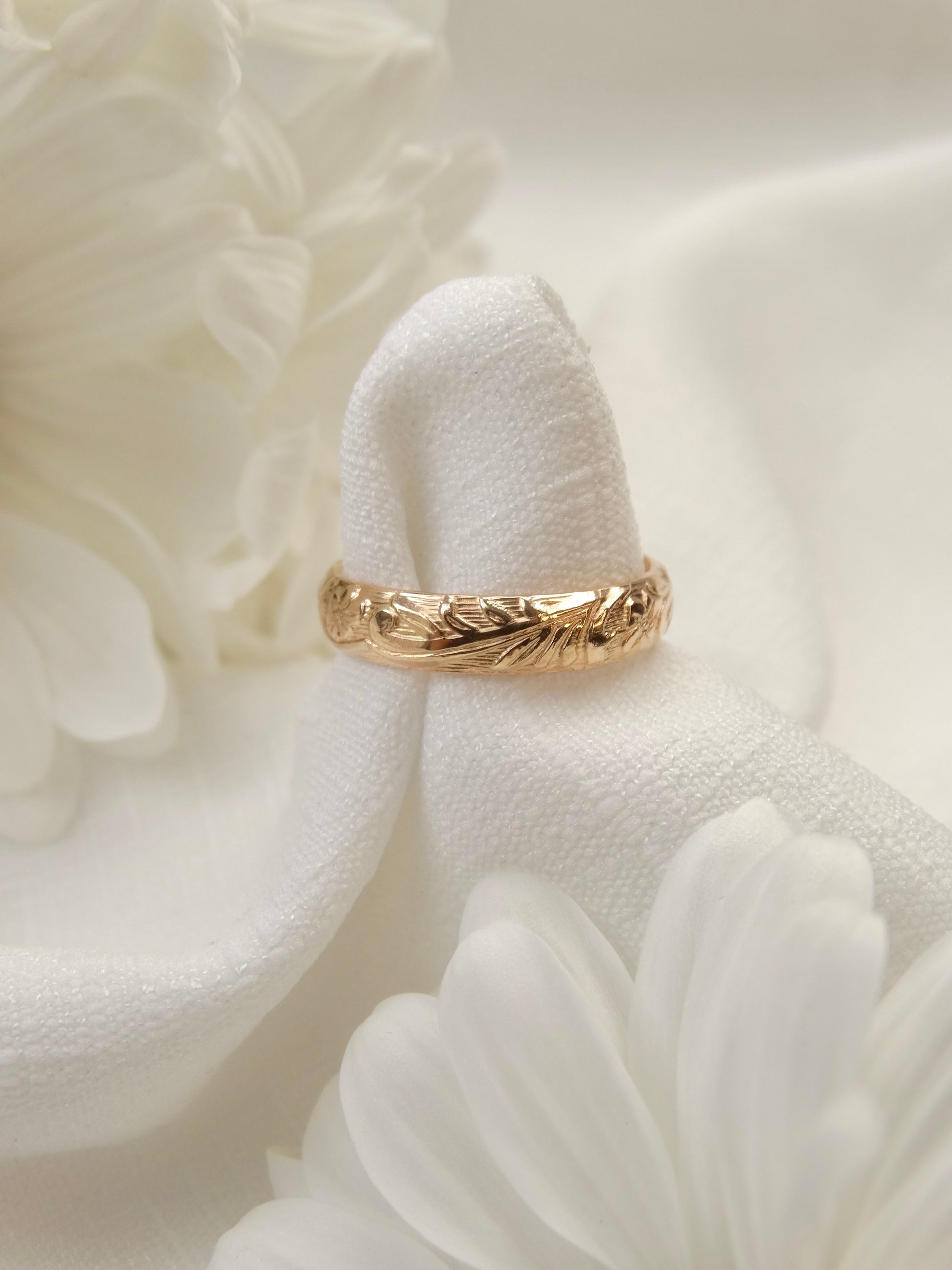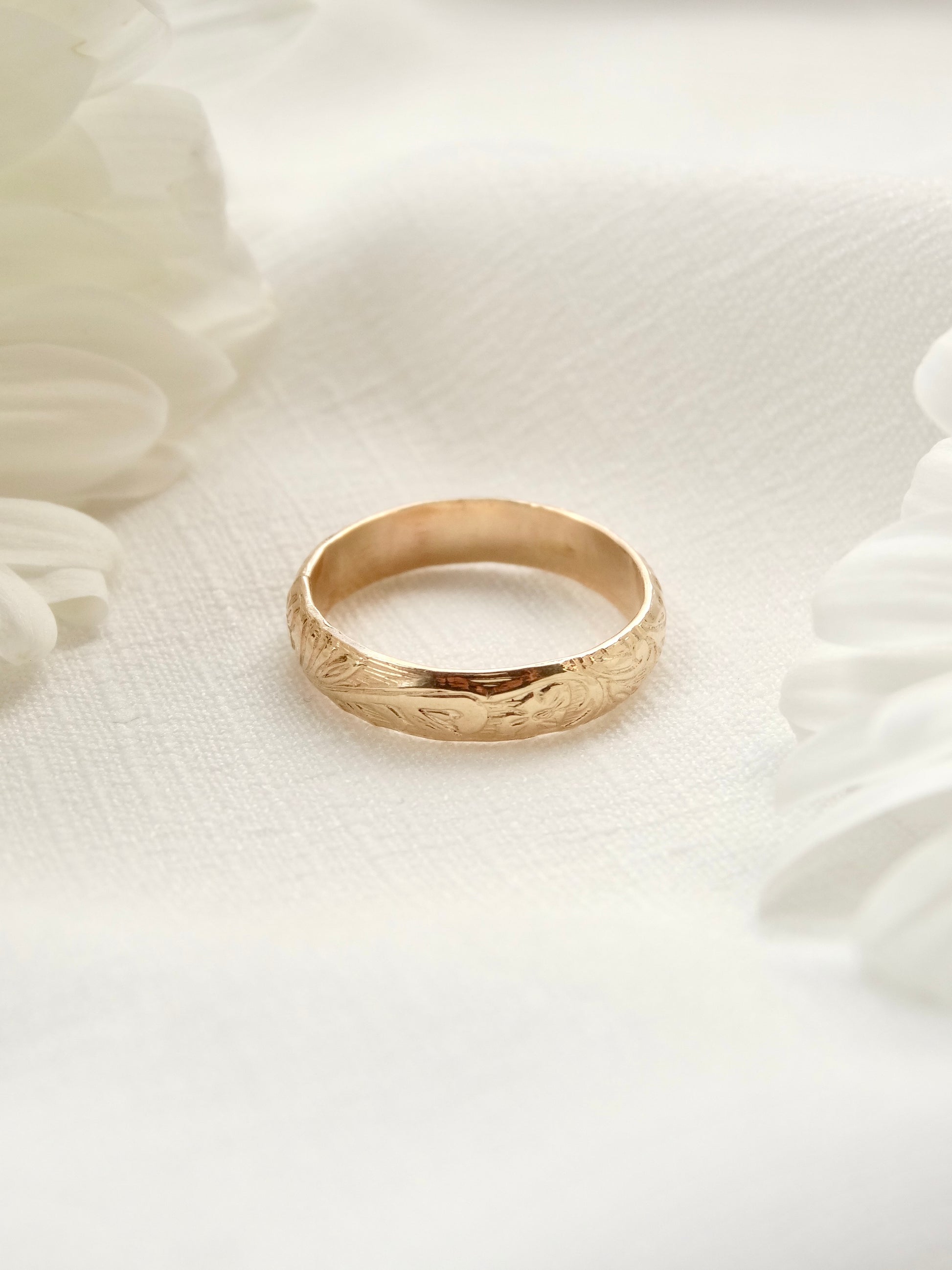 Bold and romantic, the Amara Band is hand forged from 14K Gold-Filled Metals with an elegant floral pattern. Its wide band and intricate detailing make it a timeless, sturdy statement piece.